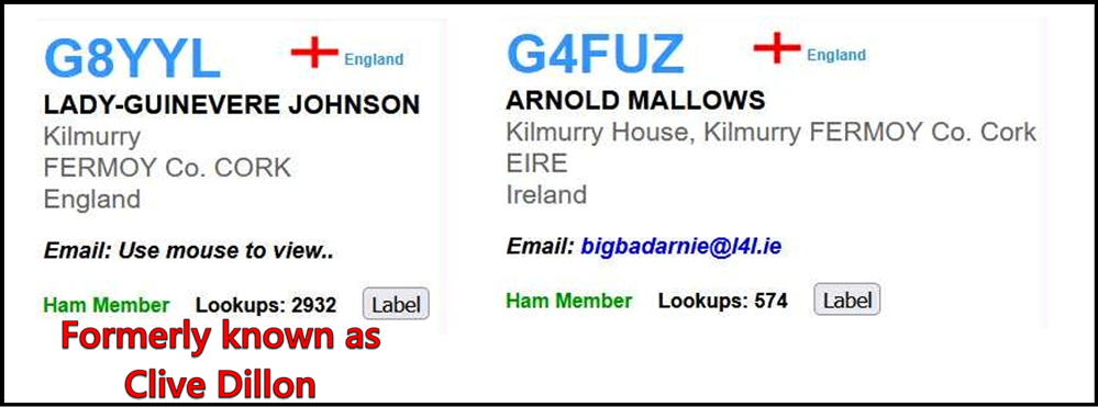Clive Dillon, or Jennifer Mallows, or Lady Guinevere Johnson G8YYL and Andrew Mallows G4FUZ. have faced charges and Clive did 30 months for fraud in the UK.
